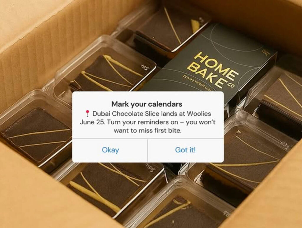 Our original Dubai Chocolate Slice sold out not once, but twice (and the reactions say it all).